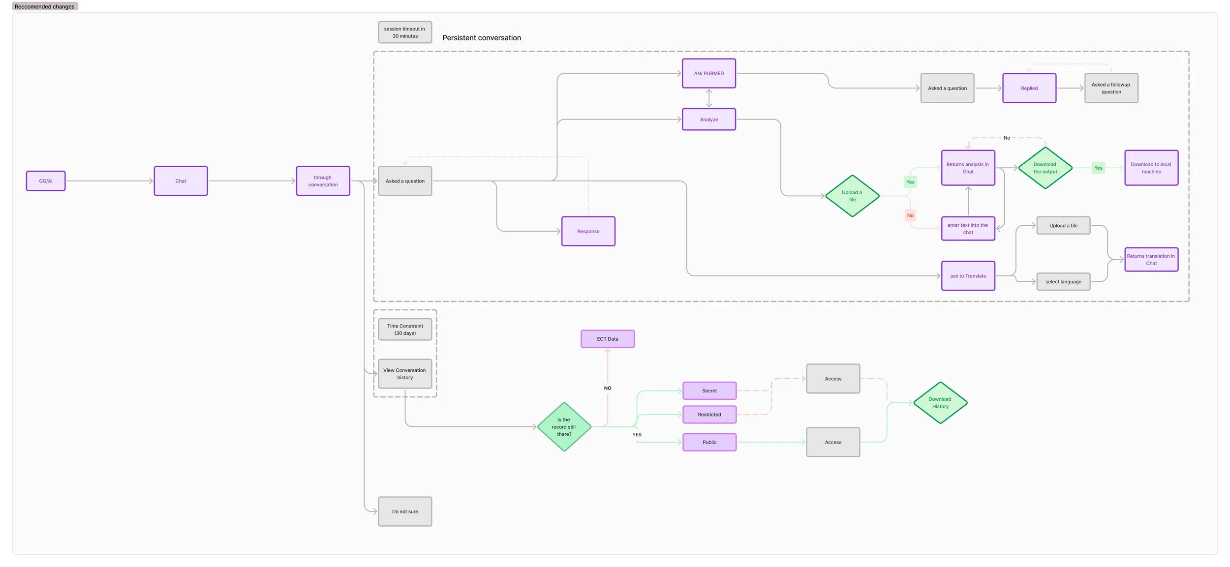 Mapped the current state of the fragmented AbbVie AI ecosystem using a detailed service blueprint. Visualized both frontstage and backstage processes across all five tools. Identified failure points in technical handoffs, UX ownership, and feedback visibility.Future-State Flow Design: